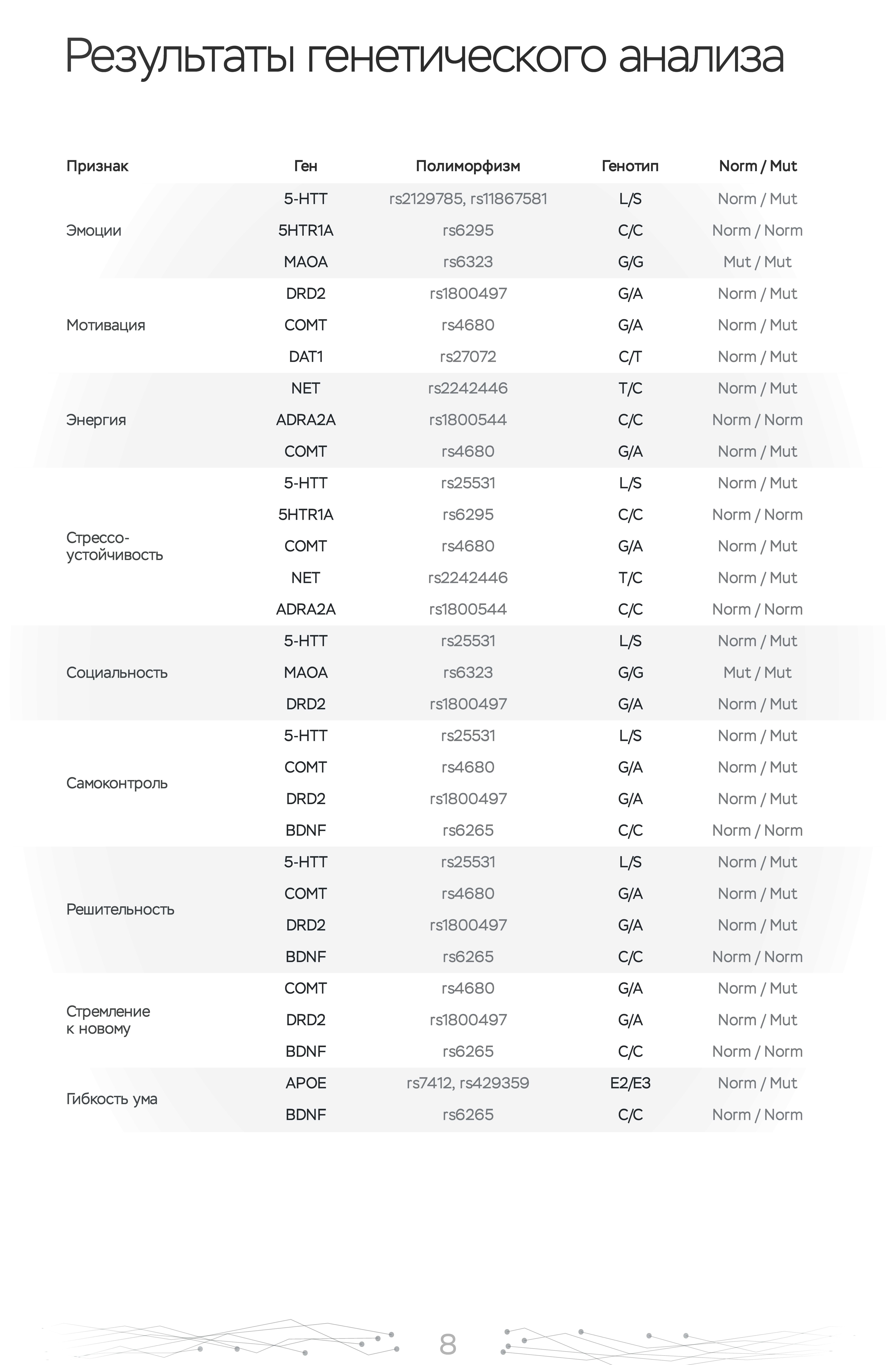 ДНК-тест для нервной системы позволит проанализировать: